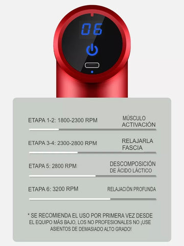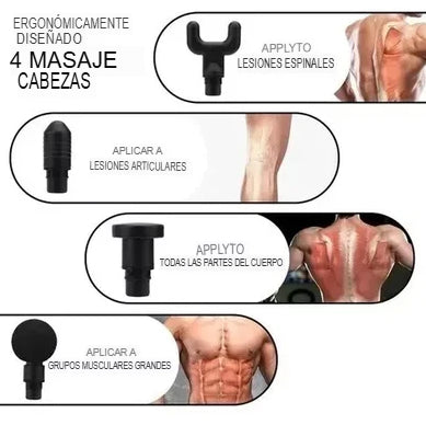 • 4 Cabezas de Masaje & 8 Velocidades: Cabeza Redonda, cabeza plana, cabeza de horquilla, esfera de cabeza plana. Con vibraciones de alta frecuencia (1600 - 3000 veces por minuto), puede ajustar la frecuencia, elegir diferentes cabezas de masaje, le permite masajear los músculos de cada esquina del cuerpo, aliviar eficazmente la rigidez muscular, el dolor y el dolor.
